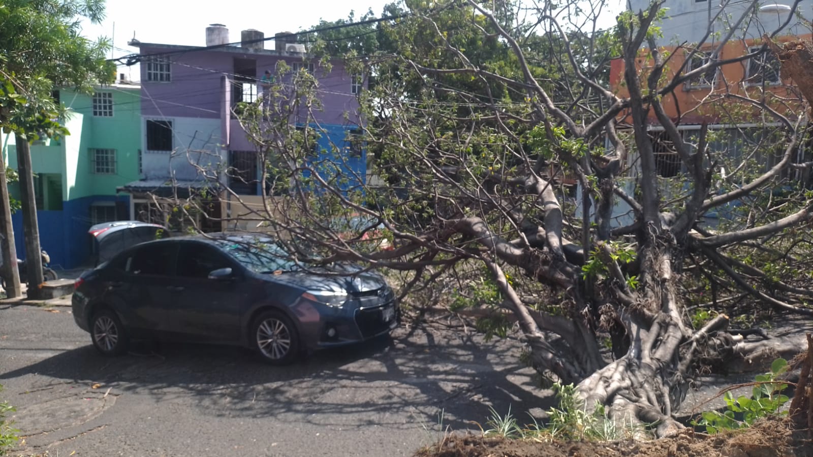 El señor Óscar Hernández Ramírez, vecino del lugar, informó que aunque el árbol se encuentra dentro de su propiedad, hizo el reporte correspondiente, pero hasta ahora no se ha atendido la solicitud. Actualmente, pide la intervención de la autoridad de Protección Civil para que se retire de manera segura.