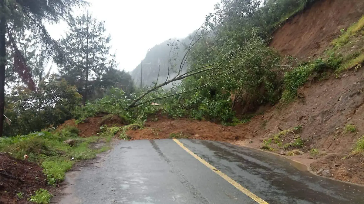 Autoridades municipales informaron que ramas, árboles, troncos y material pétreo cayeron sobre la carretera, interrumpiendo el tránsito de automovilistas, docentes y vecinos.