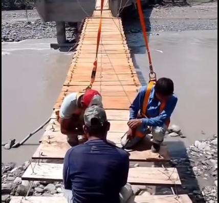 Vecinos señalaron que la estructura, hecha con materiales locales, surgió como una respuesta urgente tras quedar incomunicadas varias familias por la crecida del río.