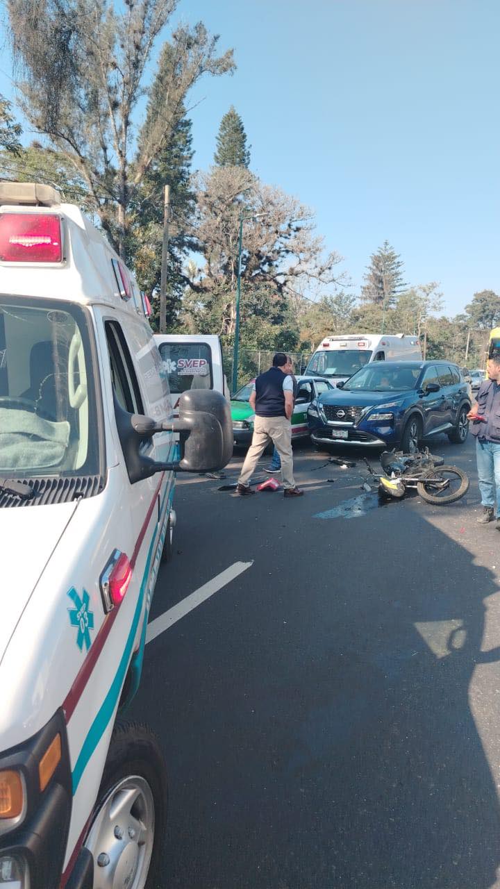 04 de diciembre del 2025. Xalapa, Ver.- Un motociclista resultó con lesiones leves la mañana de este jueves tras un accidente provocado en la carretera Xalapa–Veracruz, a la altura de la Estancia Garnica, con dirección a Las Trancas.