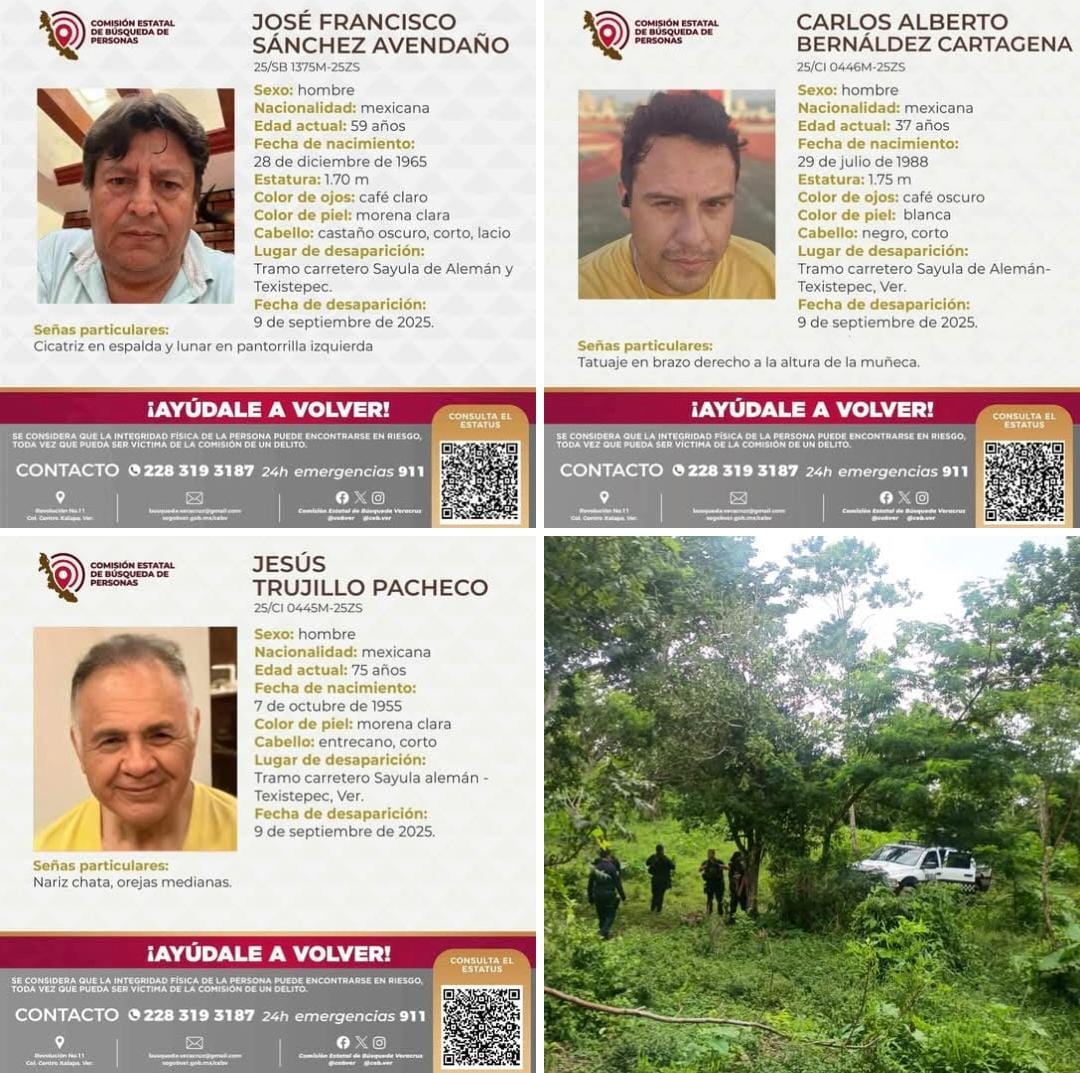 De acuerdo con familiares los 3 empresarios desaparecieron desde el pasado 8 de septiembre cuando circulaban entre Texistepec y Sayula de Alemán, luego de salir de una obra, el vierne la Suburban blanca en la que viajaban fue hallada en un predio cercano al rancho Santa Rosa, con las puerta abiertas durante un operativo de seguridad.