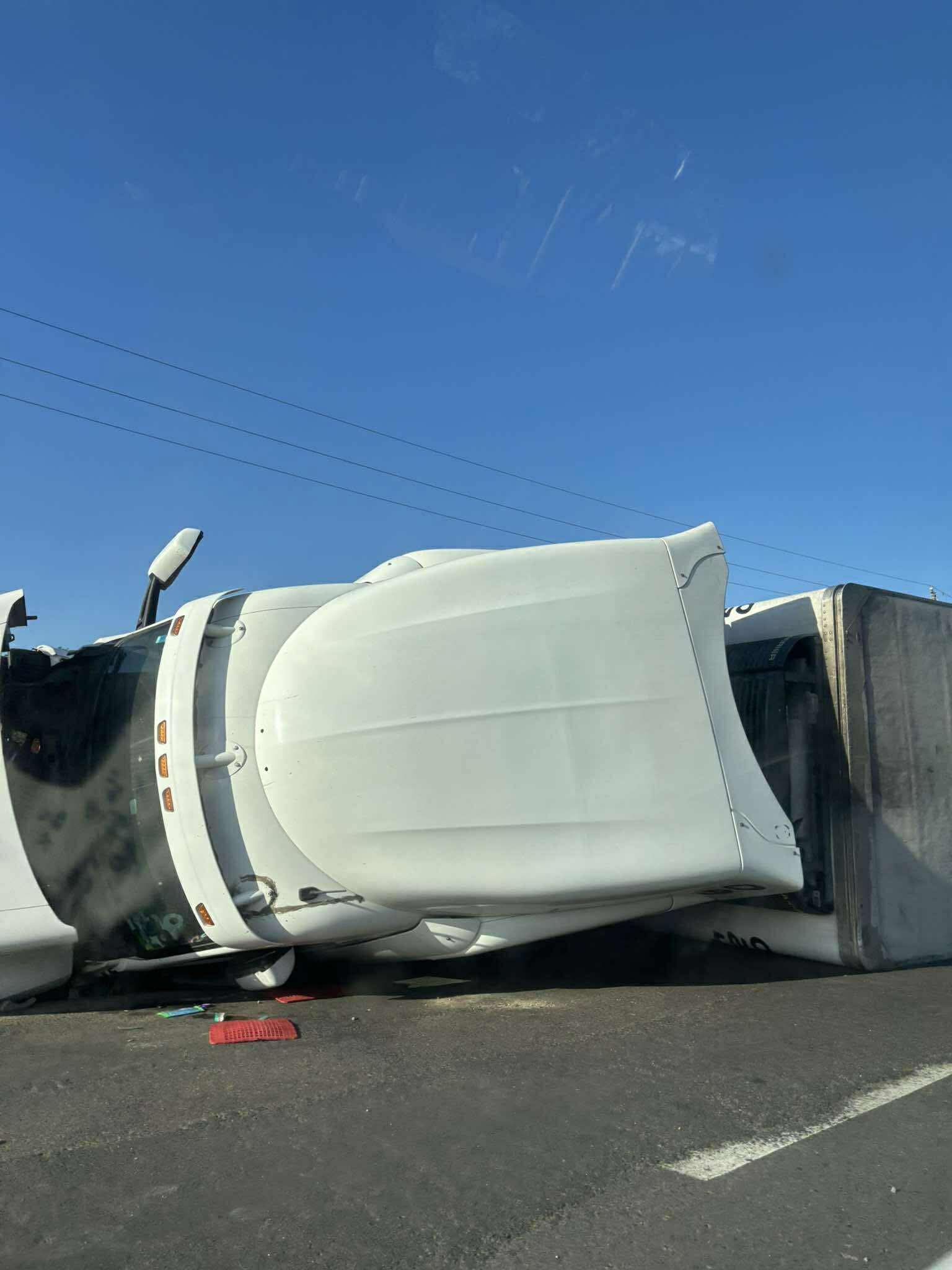Veracruz, Ver.– Un tráiler volcó a la altura del puente de Santa Fe sobre la carretera Veracruz–Xalapa libre, lo que mantiene un carril de circulación obstaculizado y provoca carga vehicular en la zona.