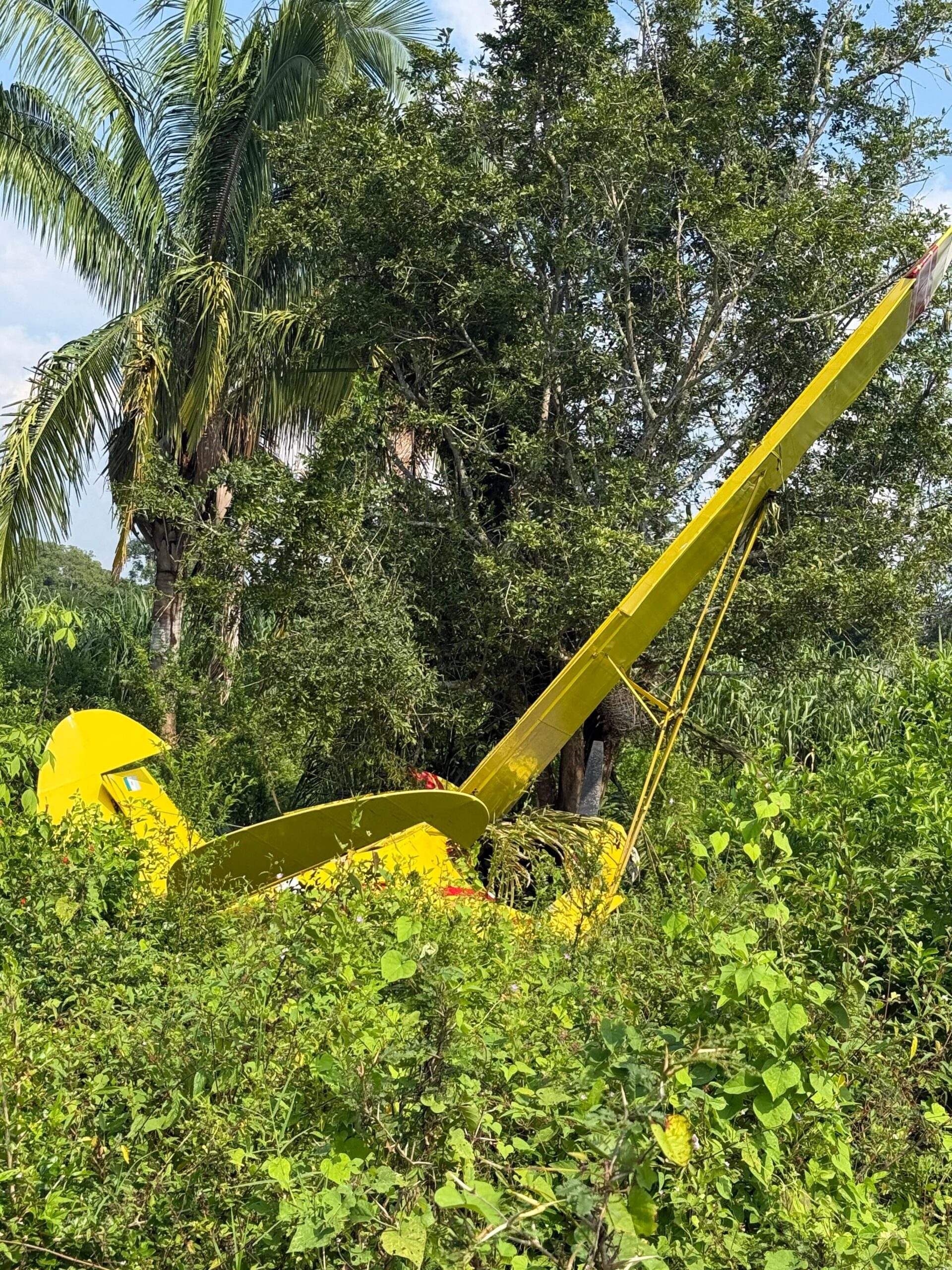01 de dieciembre del 2025. Chacaltianguis, Ver. — Una avioneta amarilla utilizada para labores de fumigación del ingenio San Cristóbal se desplomó la mañana de este lunes 1 de diciembre en la comunidad de Torno Largo, municipio de Chacaltianguis.