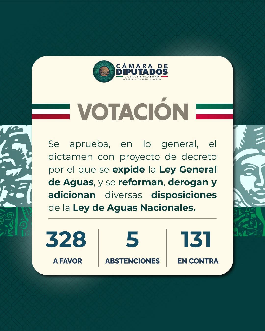 La Cámara de Diputados aprobó con 328 votos a favor y 131 en contra la Ley General de Aguas, una reforma que redefine la gestión del recurso en México y apuesta por recuperar la rectoría del Estado, frenar el acaparamiento y garantizar el derecho humano al agua, especialmente en comunidades rurales e indígenas.