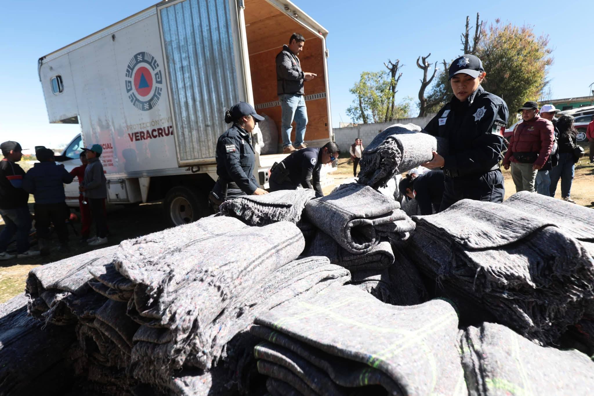 Este miércoles se entregaron mil 230 paquetes alimentarios y dos mil 460 cobertores a familias de las localidades de El Escobillo, Rancho Nuevo, El Conejo, El Progreso, ejido 20 de Noviembre, San Isidro y Frijol Colorado, ubicadas en las faldas del Cofre de Perote, donde el descenso de temperatura impacta de manera directa en la vida cotidiana y la economía familiar.