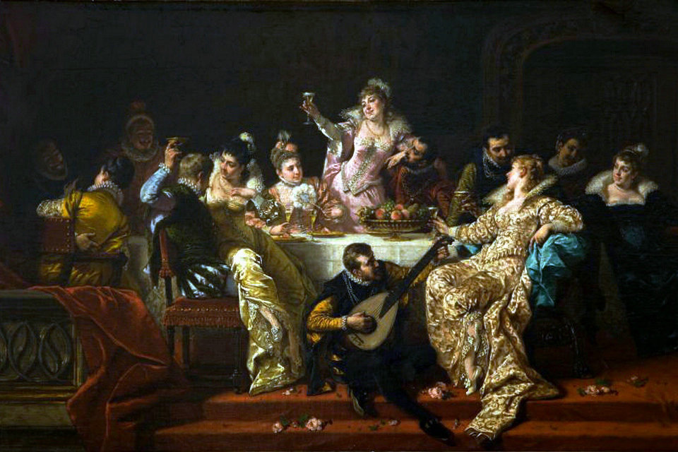 • El Simposio Griego: Dividido en dos partes (comida y bebida), era el espacio para la formación ciudadana. La posición reclinada y la copa compartida simbolizaban una igualdad relativa entre los “aristoi” (los mejores).