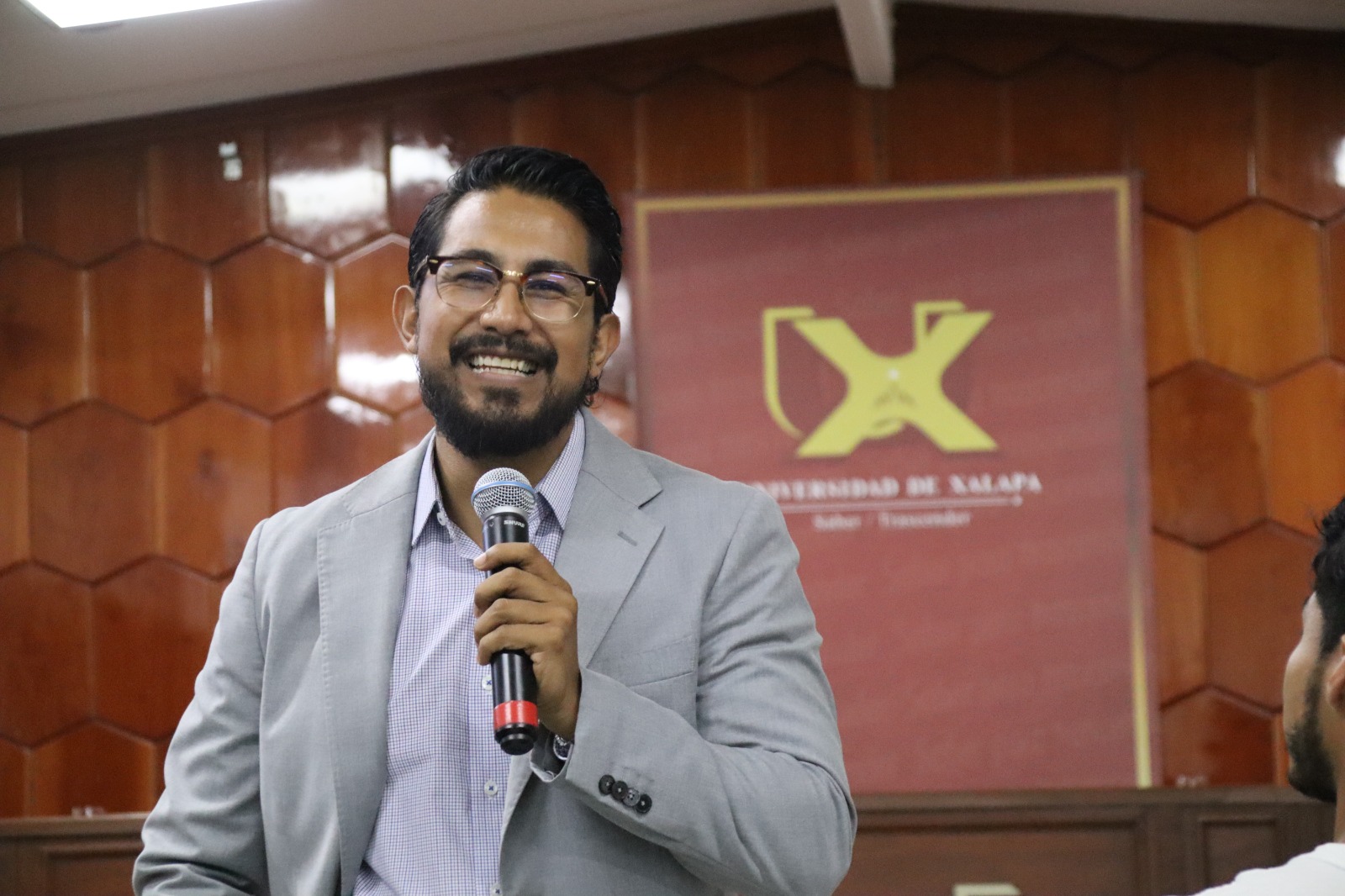 03 de noviembre de 2025.Xalapa,Ver.- Este lunes el director nacional de Enactus, Eduardo Iñígues ofreció una ponencia en para jóvenes de la Universidad de Xalapa en la que destacó el desarrollo de habilidades empresariales y liderazgo en estudiantes universitarios a través de proyectos de impacto social y ambiental.