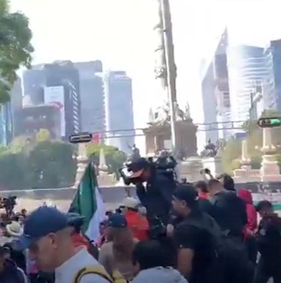 Decenas de personas se reunieron en el emblemático monumento con la intención de avanzar por el Paseo de la Reforma hasta la Plaza de la Constitución (Zócalo). Entre los gritos de los inconformes, destacó la consigna: “¡Mi voz no es desorden, es derecho!”.