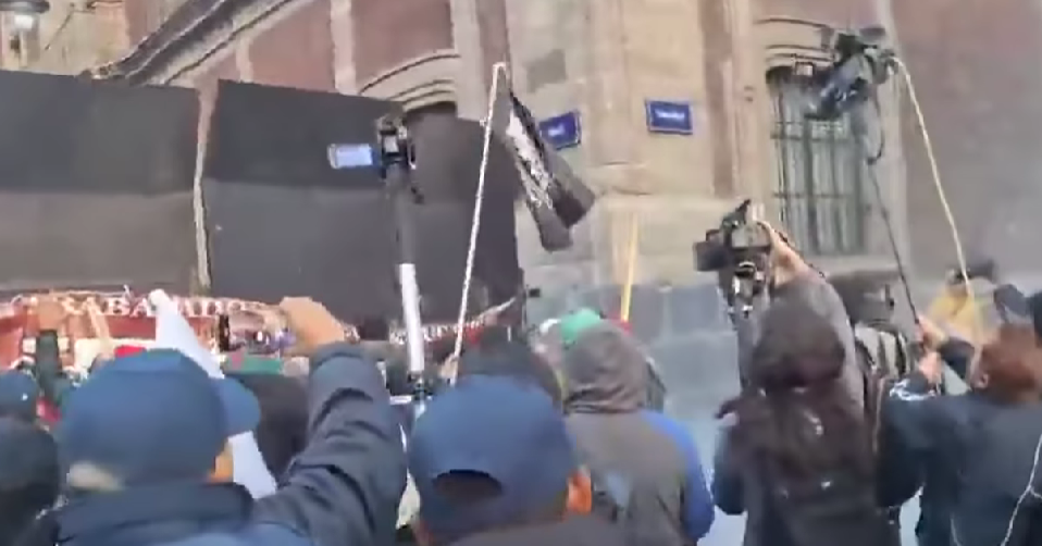 13 de noviembre del 2025. CDMX.- Durante la mañana de este jueves 13 de noviembre de 2025, integrantes de la CNTE arribaron al cruce de Correo Mayor y Moneda, en el Centro Histórico de la Ciudad de México, y comenzaron a empujar las vallas metálicas que rodean el Palacio Nacional.