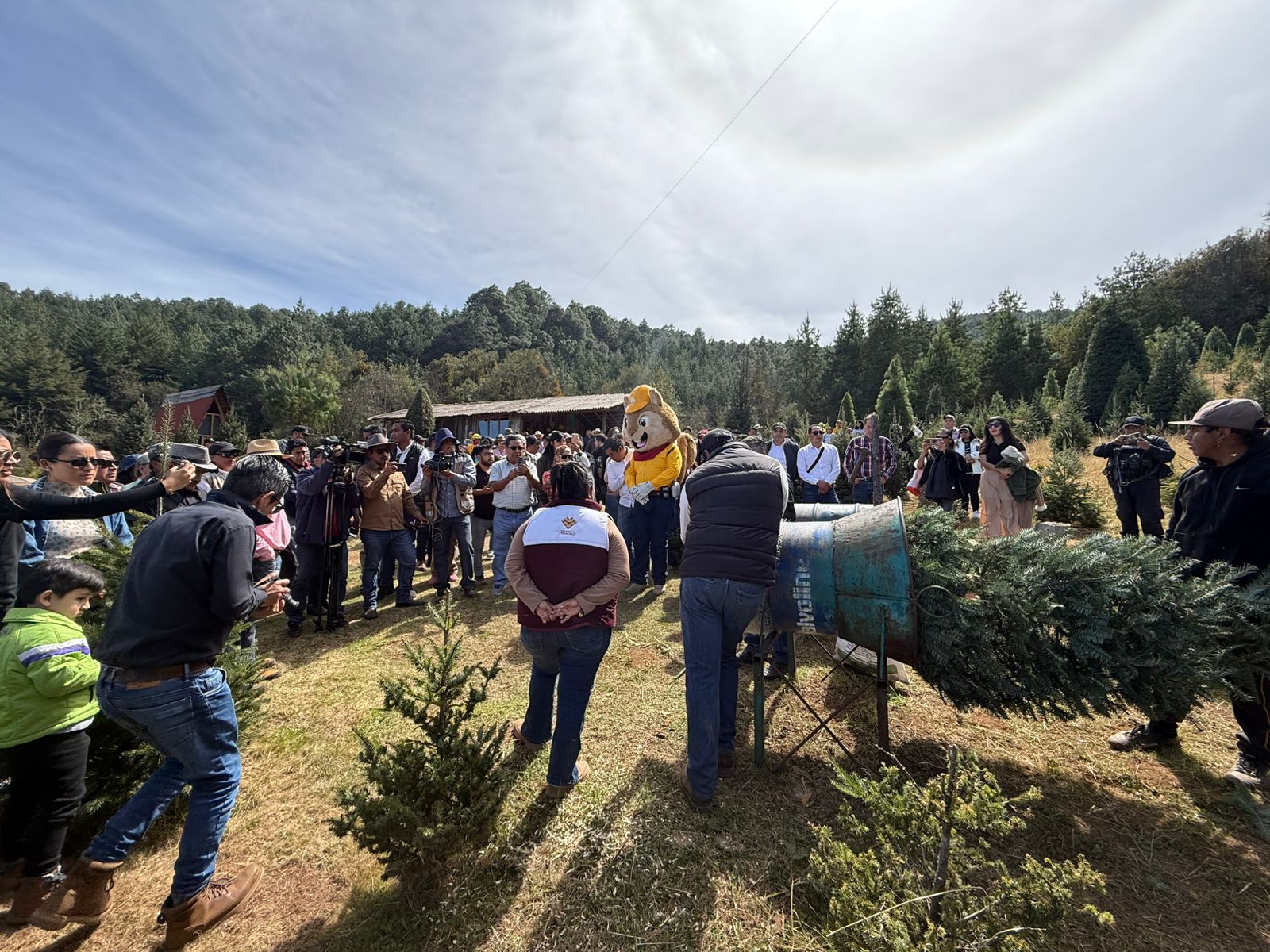 09 de noviembre de 2025.Las Vigas,Ver.- Esta sábado se llevó a cabo el primer corte de árboles naturales en el Rancho La Cueva del Obispo, productores silvícolas y la Secretaría de Medio Ambiente (SEDEMA) dieron inicio a una temporada que combina tradición, empleo rural y protección de los bosques veracruzanos.