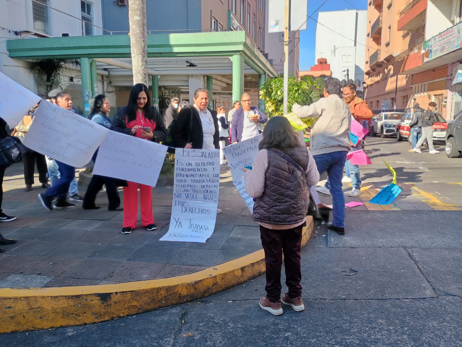 Xalapa, Ver.- Trabajadores adscritos a la Sección 26 Centro del CENSA se manifestaron este jueves en el Hospital Doctor Luis F. Nachón, para exigir el pago de una quincena retenida, presuntamente por la falta de liberación de un recurso federal.