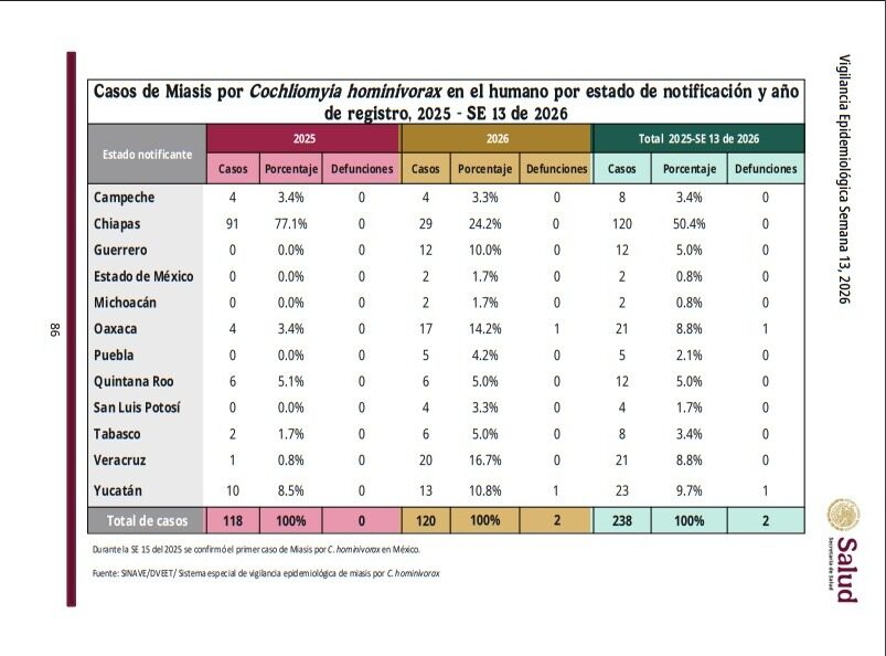Especialistas advierten que los grupos más vulnerables son personas con heridas, adultos mayores o pacientes con enfermedades previas, ya que la infestación puede agravarse rápidamente. Ante esta situación, autoridades mantienen vigilancia epidemiológica y llaman a la población a extremar medidas de higiene y atender cualquier lesión de inmediato para evitar contagios.
